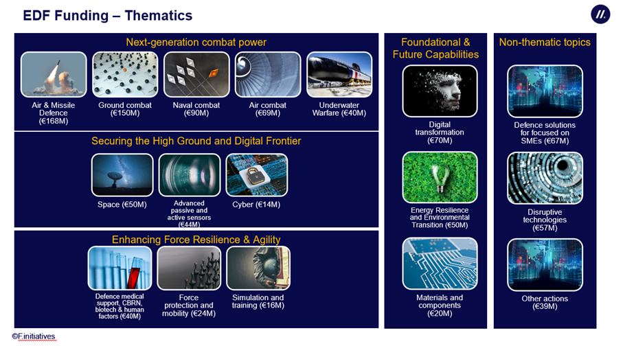 L’EDF 2026 finance un large spectre de domaines technologiques, regroupés en grandes thématiques :